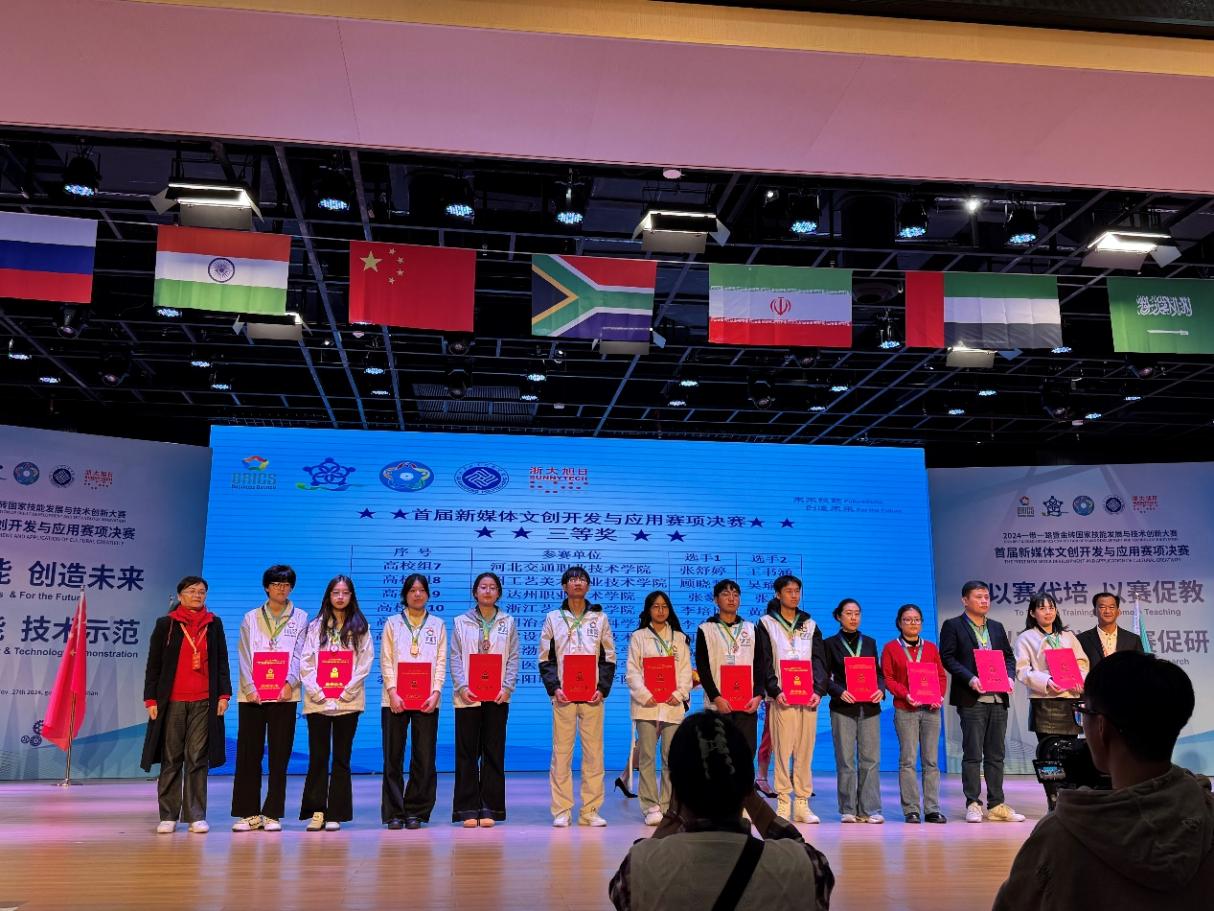 11月27日至30日,2024一带一路暨金砖国家技能发展与技术创新大赛之首届新媒体文创开发与应用赛项国赛决赛在广东职业技术学院高明校区举办,文物保护考古学院侯贤俊、赵琪两位老师经过激烈角逐,荣获教师组三等奖。