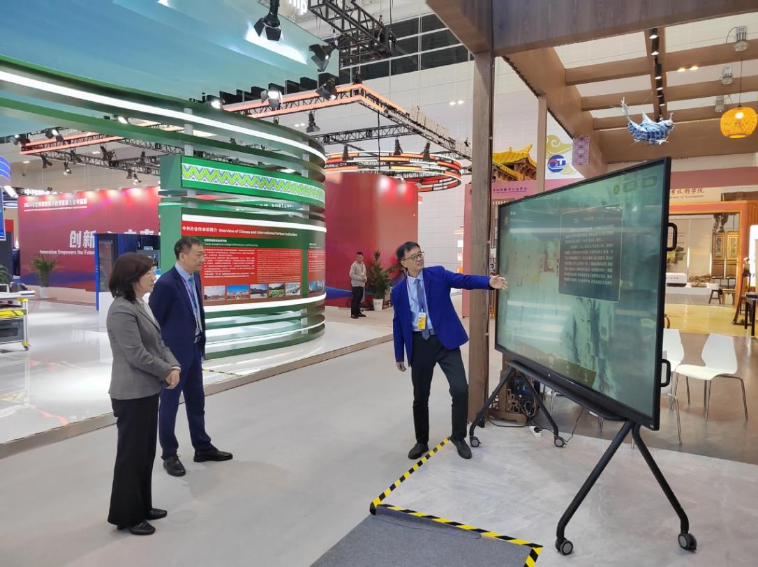 作为河南省唯一参展院校,我校石窟寺保护专业教学虚拟仿真系统以学校自行设计的龙门石窟奉先寺病害分析与虚拟复原展示仿真系统为核心,通过动画演示、互动操作展示病害分析、窟前古建筑复原、卢舍那大佛虚拟修复。新颖的展示方式吸引了不少中外参展人员纷纷前来打卡。教育部副部长吴岩,中国职业技术教育学会会长、教育部原副部长鲁昕,教育部职业教育与成人教育司司长彭斌柏,河南省教育厅厅长毛杰、副厅长张国强等现场参观指导,我校党委书记赵健参加活动。