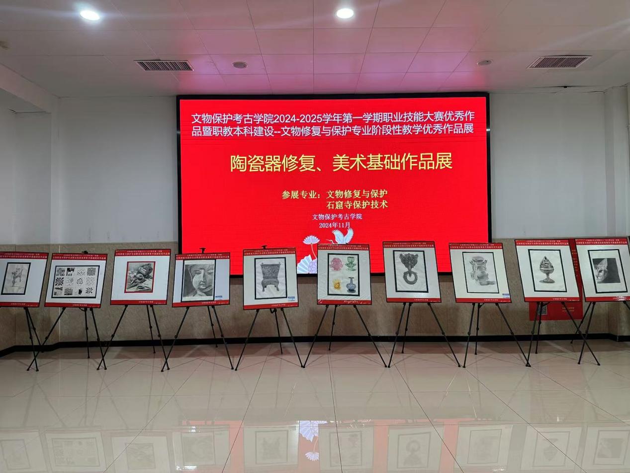 12 月 9 日上午,洛阳职业技术学院文物保护考古学院 “2024 - 2025 学年第一学期文物修复与保护专业阶段性教学成果:陶瓷器修复、美术基础作品展” 于学院 6 号楼大厅盛大启幕。此次展览是继陶瓷器制作、青铜器修复教学成果展之后的第三批展览,由文物修复与保护、石窟寺保护技术专业教研室携手举办,展览将持续至 12 月 23 日,是对本学期陶瓷文物修复、美术基础课程成果的集中呈现。